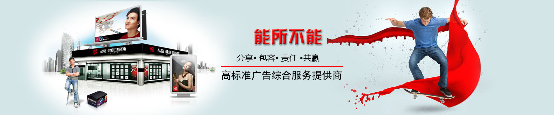 贵州黔翼丰广告有限公司是一家集户外媒体发布、展览展示设计、广告制作、广告创意策划、交通设施、广告材料销售等为主要业务的专业广告公司。公司始终强调遵循基本的商业道德和服务准则,立足于对传统观念的打破和对现行创作表现执行的在组合及再造,依靠科学的管理体系和完善的创作流程,面向客户提供明确、专业、细致、可靠的整合服务和增值服务。坚持“以人为本、质量为首、诚实守信、顾客至上”的经营管理理念,带领公司逐步向高科技进军,向多元化,多领域发展。公司拥有世界先进的UV卷材、UV平板材、户内外写真、喷绘、横幅、雕刻、批发广告材料、综合服务一体的专业广告公司。拥有业界3米UV卷对卷喷印机、UV平板喷印机、高精度旗帜机、喷绘机、超宽户外高精写真机等专业广告制作设备,产出画面饱和清晰、色彩鲜艳.推行5S标准化生产,采用灵活轮值的作业方式,提供一站式便捷服务.喷印日产量高达5000平米。公司同时拥有钢结构、吸塑、标识标牌生.....
